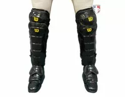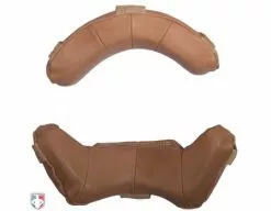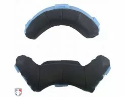 Currently, this two-tone padding is one of the two styles of wrap-around pads being produced by Wilson. The wrap-around pads conform to the face and are black full grain leather on the inside and grey poly-urethane on the exterior providing the most protection of the Wilson umpire mask replacement pads. The extra padding wraped around the top and bottom bars of the mask reduces potential injury from the mask shifting upon impact.